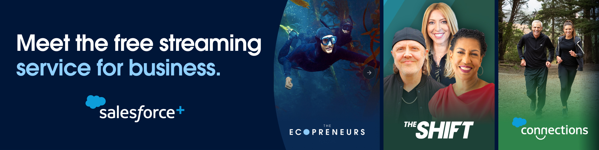 To reimagine B2B marketing, Salesforce launched Salesforce+: a streaming platform blending business insights with entertainment-level storytelling. Our flagship series, The Shift, spotlighted organizations navigating digital transformation, from OneUnited Bank to Metallica's foundation.
